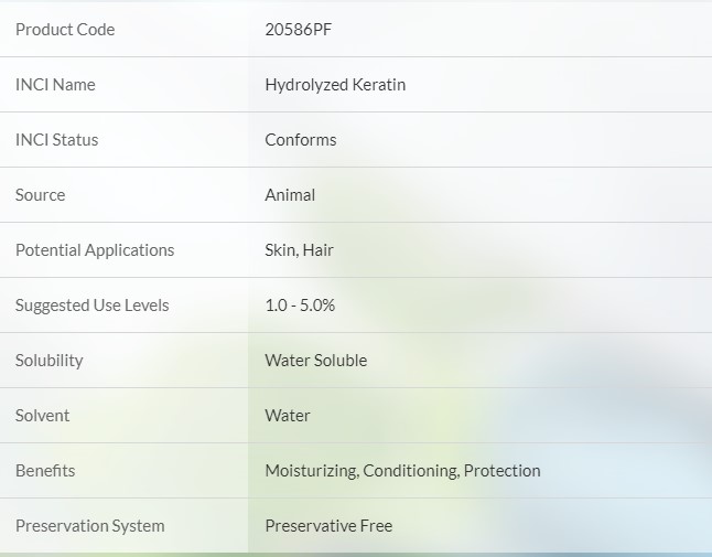 پروتئین های حیوانی : پروتئین هیدرولیز شده کراتین